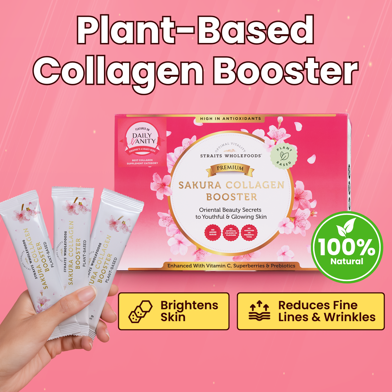 Say goodbye to dull, tired skin. Premium Sakura Collagen Booster is a 100% plant-based formula designed to help you glow from within – naturally.